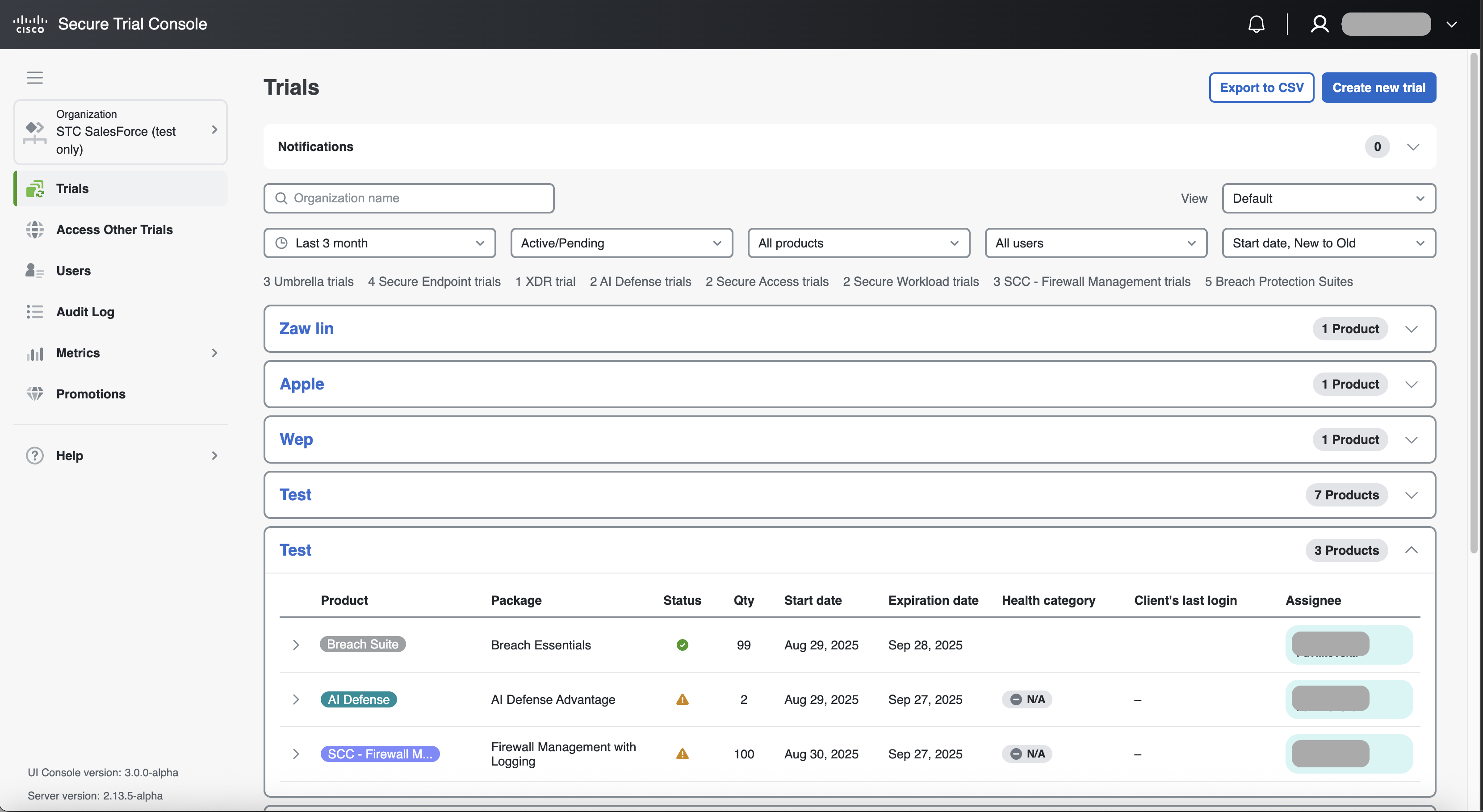 Welcome to Cisco Secure Trials Console