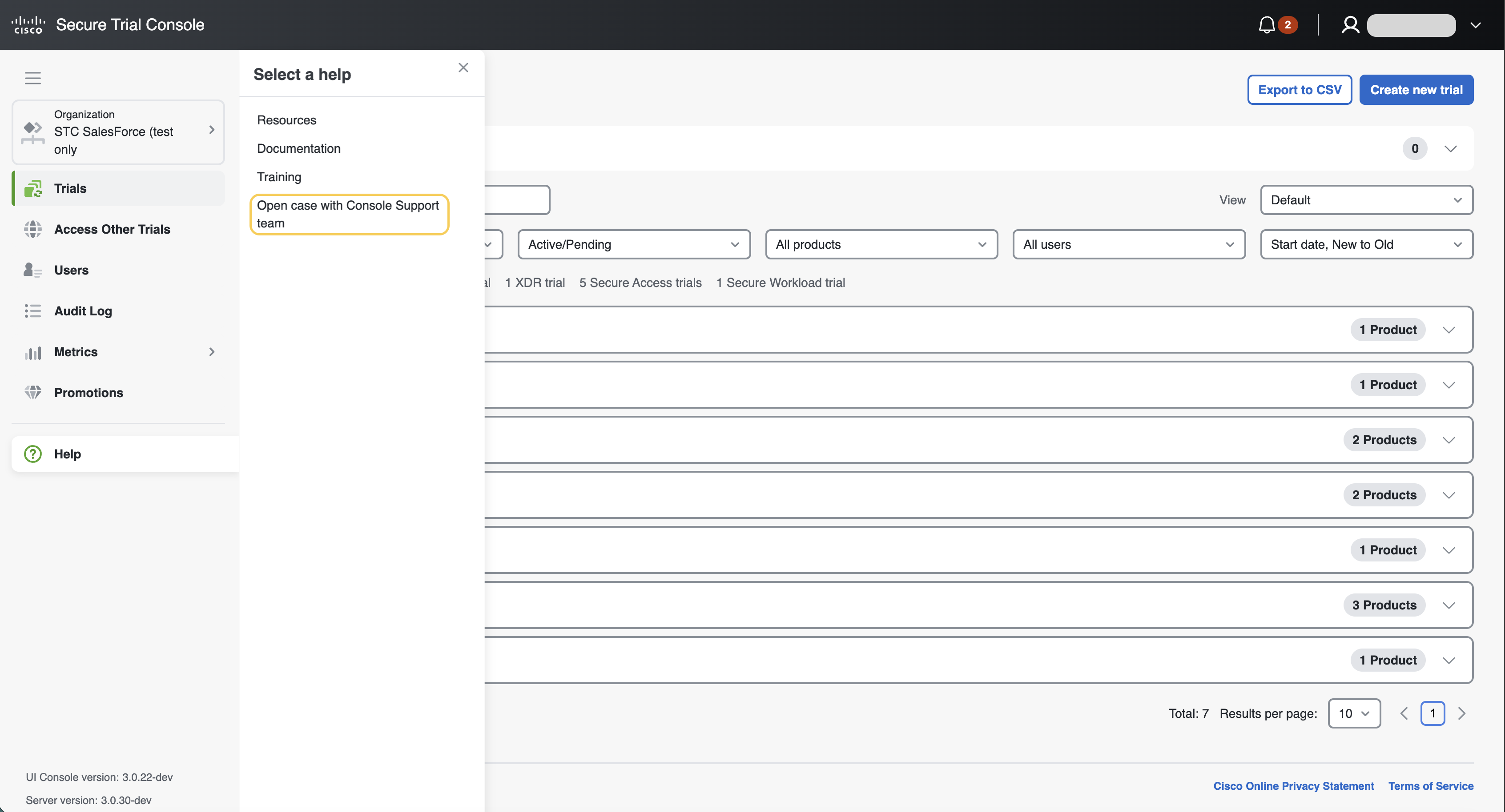If you have questions or issues with the console, first look for answers in this online help or refer to the available product training and user guides. If you still cannot solve your issue, please contact the STC Support team by opening a case through the STC Console by selecting Open Case with Console Support Team in Help section menu.